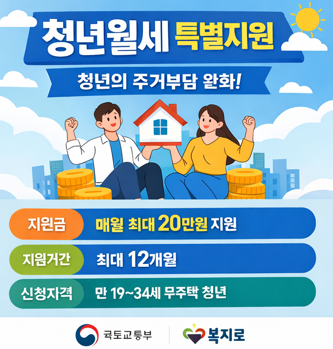 2026년 청년 월세 지원 제도는 청년들의 주거비 부담을 줄이기 위해 정부가 시행하는 대표적인 주거 복지 정책입니다. 만 19세부터 34세까지의 청년을 대상으로 월 최대 20만 원, 최대 12개월까지 지원받을 수 있으며 총 최대 240만 원의 월세 지원금을 받을 수 있습니다. 특히 2026년에는 신청 방식이 개선되어 상시 신청이 가능해졌다는 점이 큰 변화입니다.