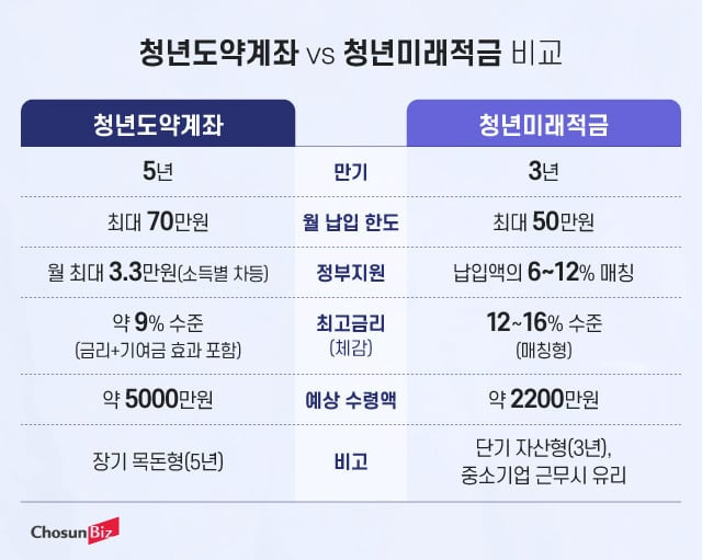 | 청년도약계좌 | 청년 | 5년 | 약 5,000만 원 |